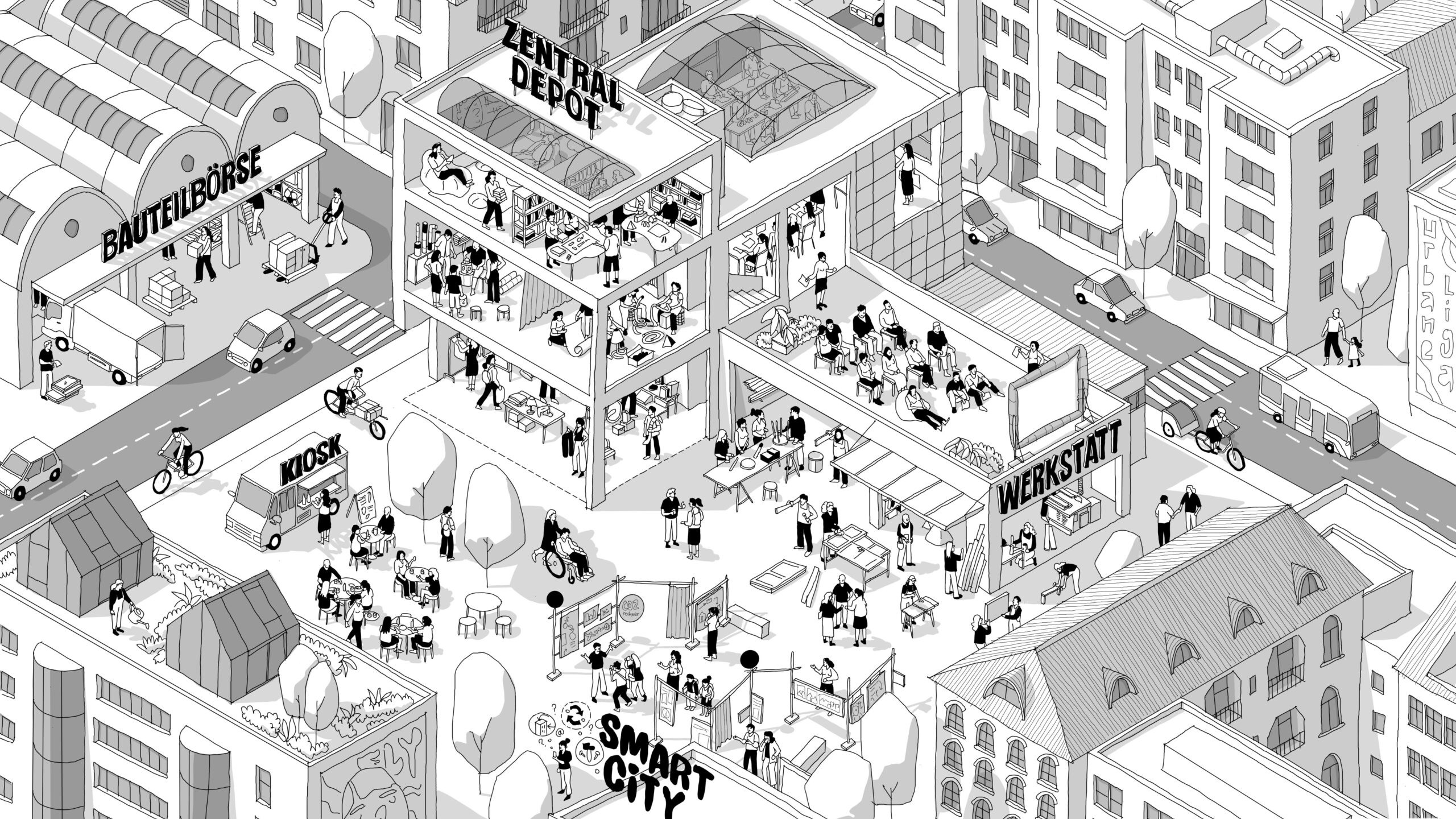 We are a collective of artists, craftspeople, architects, material scientists and urbanists and work in an interdisciplinary field between art, design, spatial planning and social engagement. Our main motivation is to appropriate public space with various formats and in cooperation with other city makers and, together with city residents, to enable low-threshold access to activities, workshops and social and cultural offerings in the neighborhood.